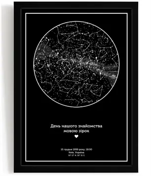 Це унікальна проекція зоряного неба, яка показує точне розташування зірок і сузір'їв в момент особливої для вас події.